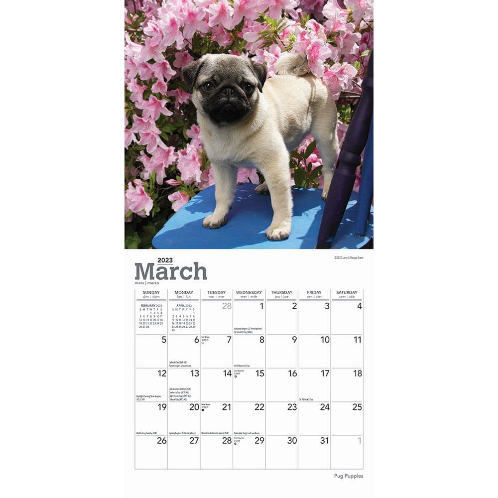 Pug Puppies 2023 Mini Wall Calendar 7x7