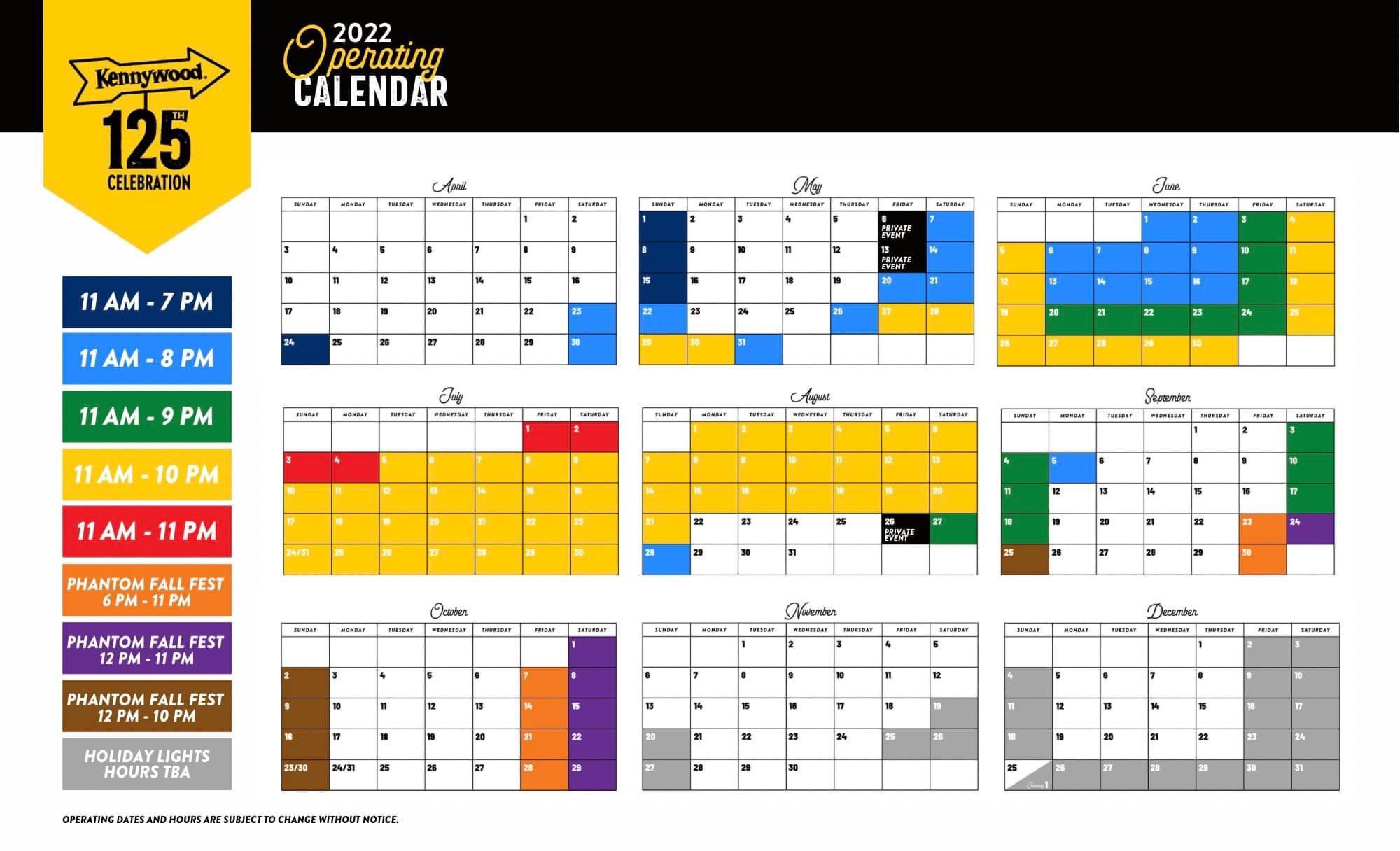 Kennywood on Twitter "Your OFFICIAL 2022 Operating Calendar is here