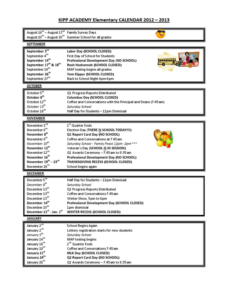 KIPP Academy Elementary School Calendar 201213 (English) Public